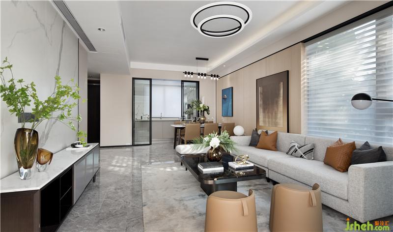 淳則之居為四室兩廳三衛(wèi)的疊拼戶型,整體面積為119平方米。本案選用暖灰色為主色調(diào),局部木紋肌理和大理石,使空間散發(fā)出當代的氣息。樣板房設計