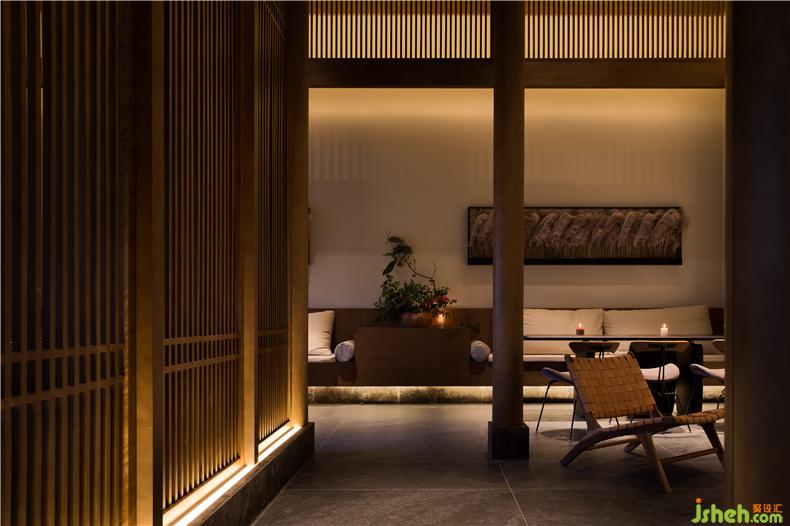 休閑區(qū)沙發(fā)位融入編織的元素,與木柵格隔斷相呼應(yīng),裝修設(shè)計(jì)家具粗狂的石材與細(xì)膩的軟包碰撞出古樸安靜的感覺,做舊木制單品以及火爐裝置的點(diǎn)綴更顯漁鄉(xiāng)漁民的生活氣息。