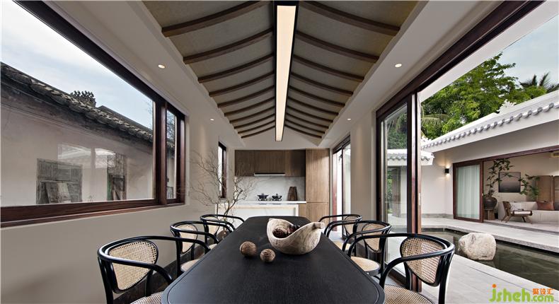 王灣的《次北固山下》“潮平兩岸闊,風(fēng)正一帆懸。”引入主題,融合當(dāng)?shù)馗N幕?,打造的室?nèi)空間。