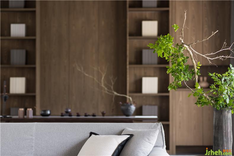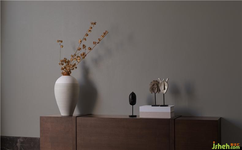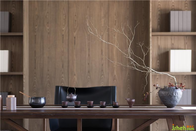 家具以樸實的實木色與莊嚴(yán)的深色皮為主,穿插著金屬的燈具,表現(xiàn)出低調(diào)的奢華感。
