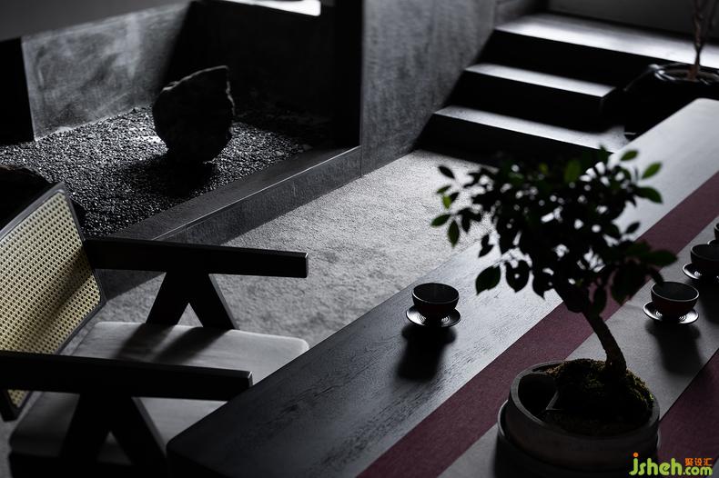 珠寶會所入門處我意欲謀求深山幽谷外出曠谷的體感,越往內(nèi)走越有光線明亮的趨勢。東向南向采光良好,為了營造良好日然光線在空間明暗變化的層次,我以門洞、水池(懸空下部)、壁龕、櫥窗、等方式把自然光進行塑造,就效果來看,自然光的塑造確實令現(xiàn)場更靈動。池景有水與無水效果相差懸殊,壁龕的自然光由于是南向并無直射陽光,必須關上門才能弱弱體會。