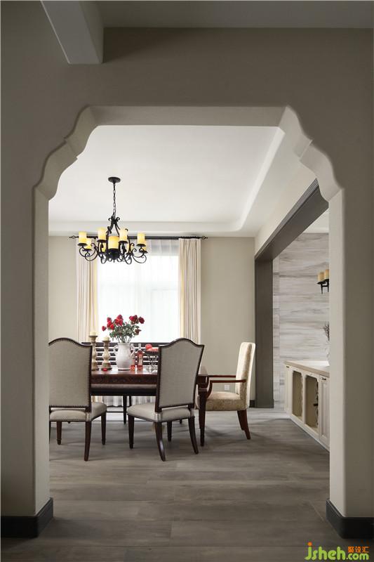 別墅空間之間的轉(zhuǎn)換采用設(shè)計師”裁剪“出的門洞,并以硅藻泥修邊。讓每一個視覺角度成為電影的鏡頭,具有故事的畫面。