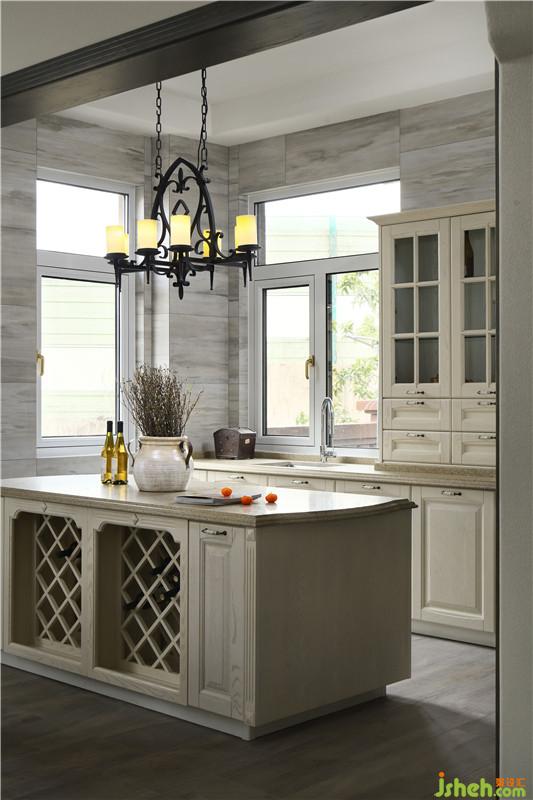超大的社交廚房,兼顧中西飲食文化。特地采用淺色門板,配合餐廳的家具色彩,營造出空間的層次感。