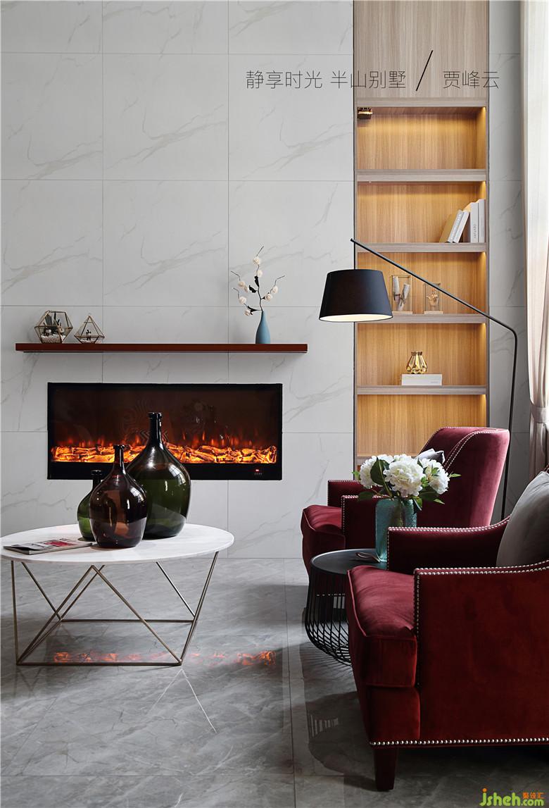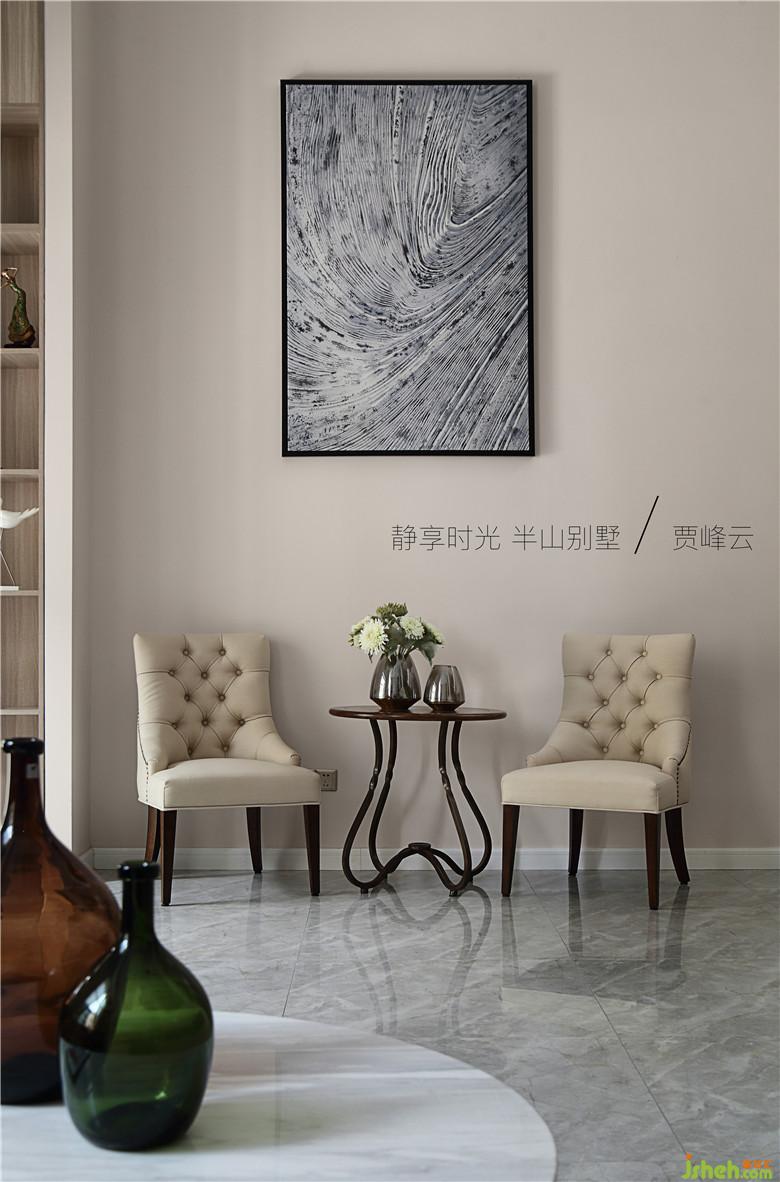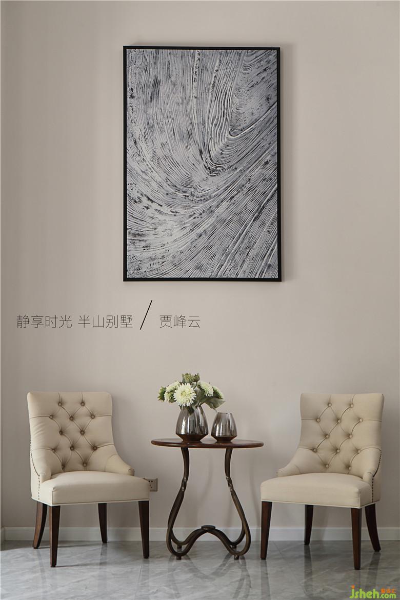 邊廳設(shè)計(jì)了休息區(qū)品鑒藝術(shù) 思想交流抽象畫暗示了業(yè)主自由不鶩的心靈