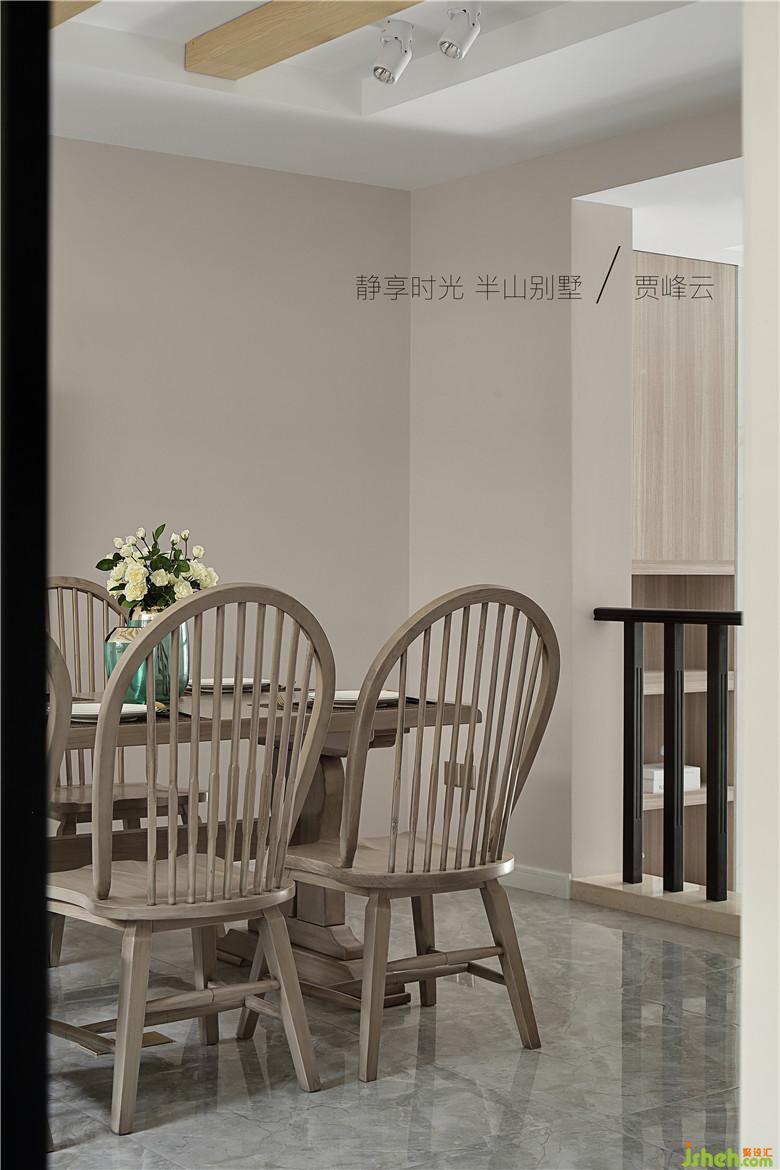 本案擁有寬大的餐廚空間餐桌椅選用灰木紋材質(zhì)