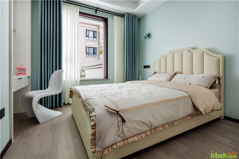 妹妹房間清醒活潑,仿佛春天的田野,專為百靈鳥在這里歌唱。房間其實(shí)不大,書桌的位置是“借”了隔壁大衛(wèi)生間的一塊。但我們?nèi)匀幌M臻g是綻放的,因?yàn)橐屝撵`自由飛翔。