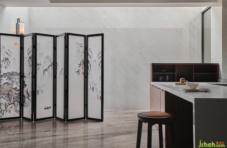 山水圖案呼應(yīng)背景的石材