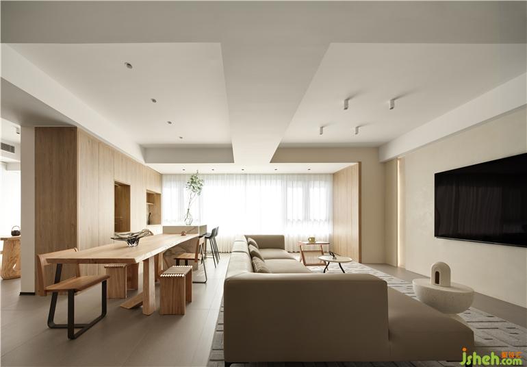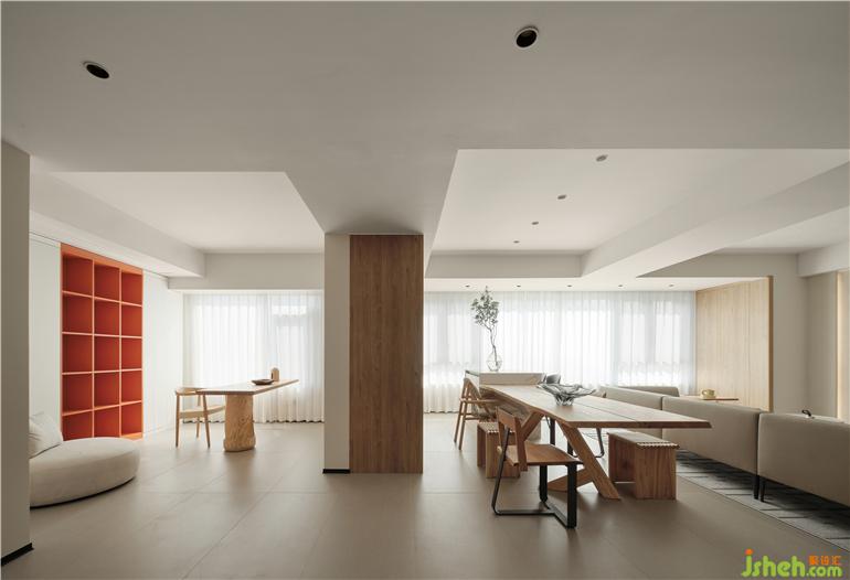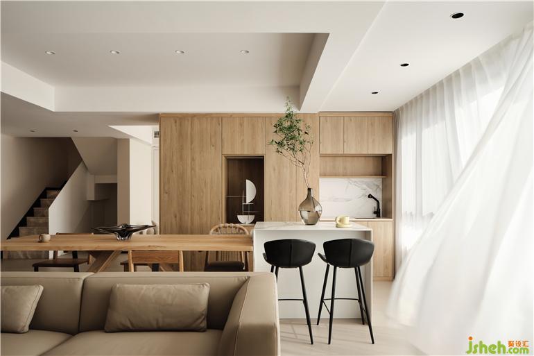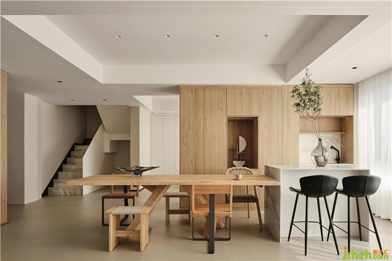 The project is a top floor duplex residence located along the Yangtze River, with a good view and sufficient sunshine. Here lives a young couple and two lovely children. In this 220 ㎡ free residence, the designer completely reorganized the original building structure to build a quiet private house that not only meets the living needs but also shows artistic temperament.