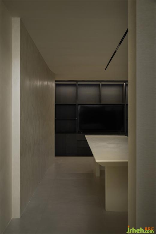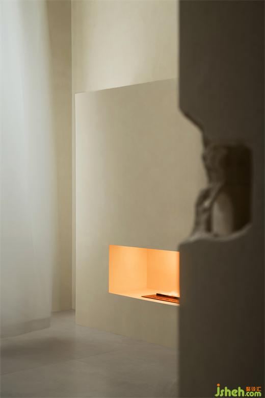 右手邊的黑色柜體呼應(yīng)背光中的隔斷,似有百種遠(yuǎn)古傳說(shuō)蘊(yùn)藏其間。