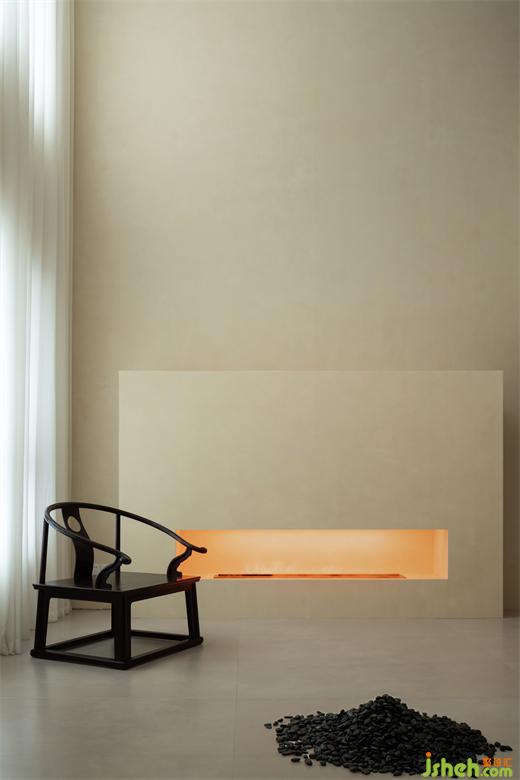 一把中式圈椅融入景中,與大廳中央堆起的黑色卵石構(gòu)建了中西方藝術(shù)的對(duì)話。