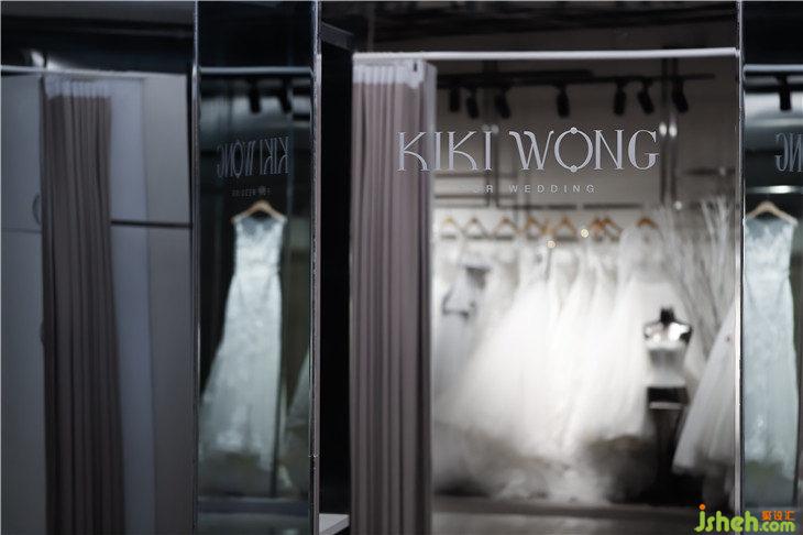 背景墻、陳列架、沙發(fā)、地板、地毯……皆用不同飽和度的灰色,形成豐富的層次感,讓空間中的主體——婚紗,得到視覺上最大限度的效果凸顯。