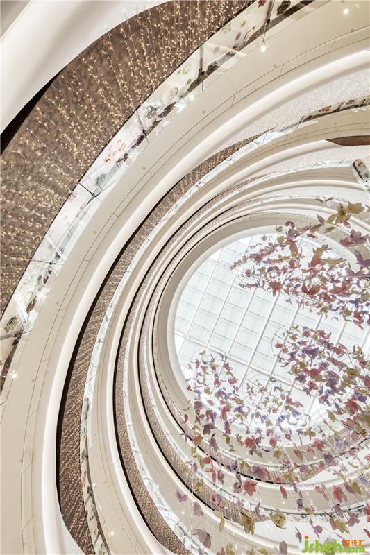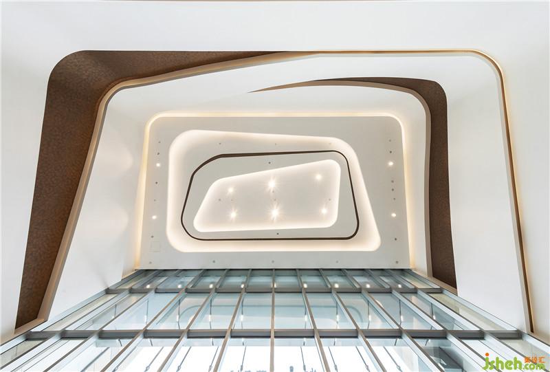滹沱河是石家莊的傳統(tǒng)文化符號之一,城市因這“一水”而繁衍滋長。設計中取其不間斷之意,在空間中延續(xù)靈感與美學。在不同材料肌理的碰撞下,主中庭的圓弧形成如河流般的回旋設計,賦予空間一種令人回味的隱喻,讓人細細品味“與天地相生共融,與人心相協(xié)歸一”的境界。