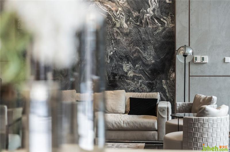 室內(nèi)設(shè)計整體以木色渲染柔和色調(diào),墻面使用“篆刻”的經(jīng)典元素,并用最新的技術(shù)實現(xiàn)落地,整齊勻稱古拙、卻又有奇險壯麗。售樓處設(shè)計