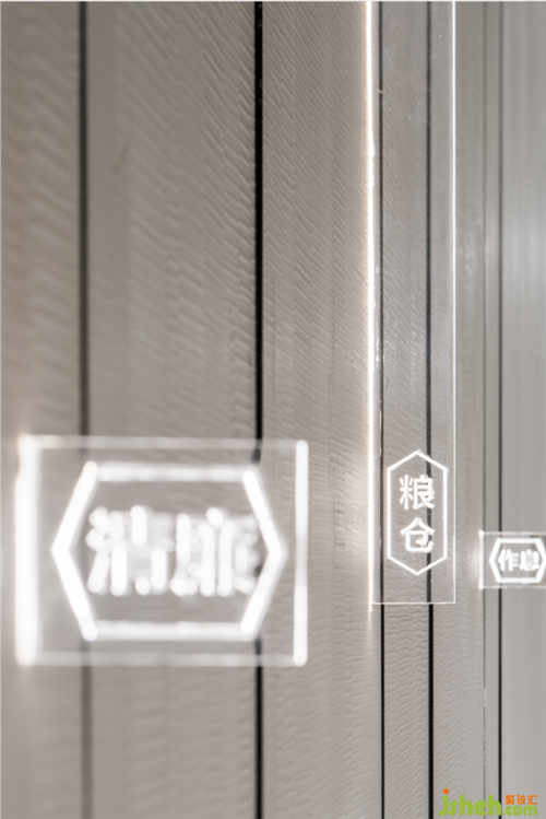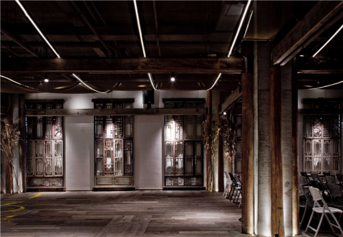 茶室/包廂:白砂巖背景墻富含肌理,頂面以細(xì)竹噴白漆,純粹自然的色調(diào),粗獷與細(xì)膩的碰撞。以當(dāng)?shù)刂窈t為原型設(shè)計(jì)的鐵藝裝置,充滿藝術(shù)氣息。玻璃磚隔斷隱約朦朧,于喧囂鬧市中勾勒出品茗小聚的私密氛圍。