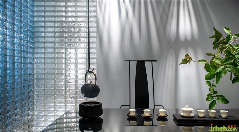玻璃磚隔斷隱約朦朧,于喧囂鬧市中勾勒出品茗小聚的私密氛圍。