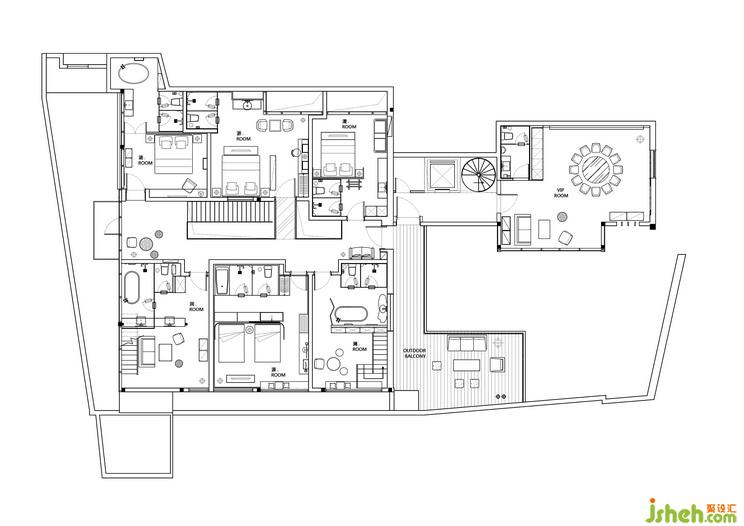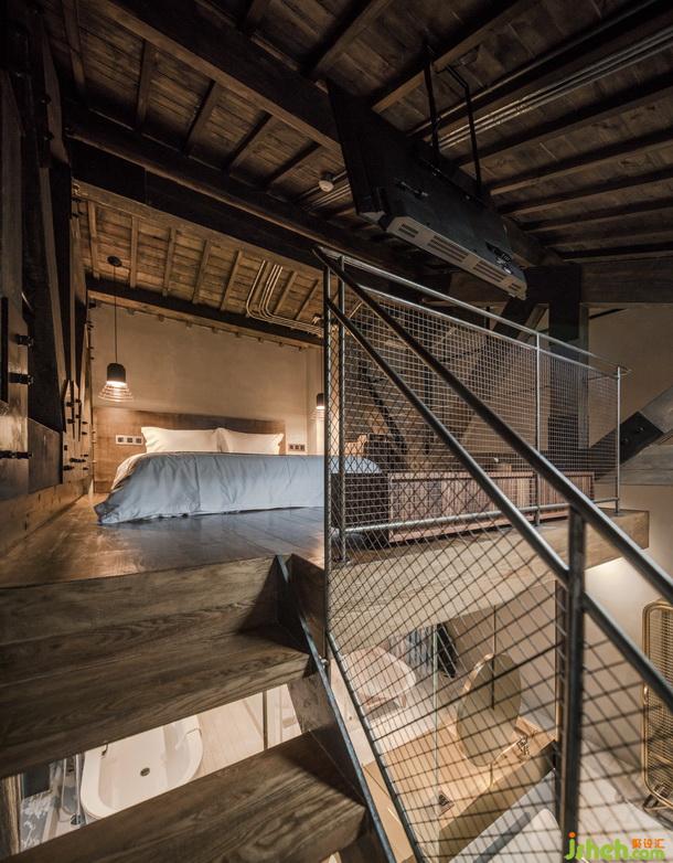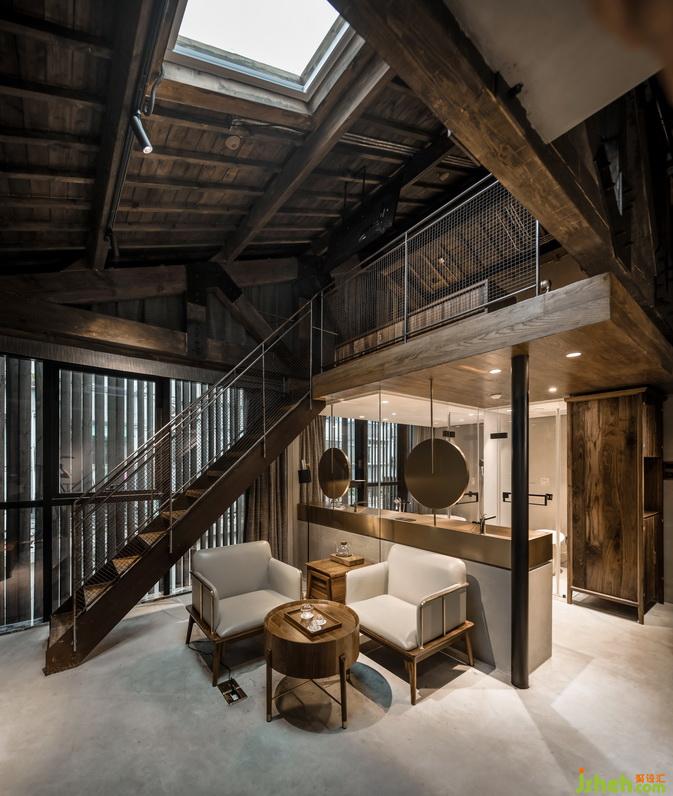 As the rigid demand and highlight of urban B&B, two large loft spring-layer rooms called “Run” and “Lan” were built in Yu Hotel. Having taken advantages of the upper space, the two 55m2 rooms are divided into two floors to leave enough room downstairs for various facilities: e.g. open bathing space, recreational reception area, etc. The space upstairs is the rest area so as to separate the places for work, recreation and rest apart to ensure guests’ privacy. The electric pentroof skylight in the ceiling provides those who stay here with broad and clear sight as well as deep and evenly distributed lighting in daytime. And lying in the bed at night makes you feel like you are in a sky city where you can touch the stars with your hands.