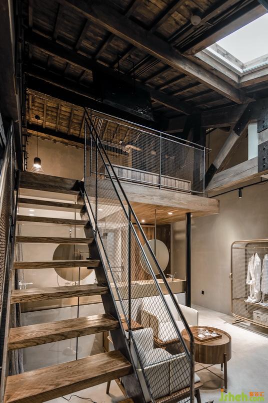 渝舍印象共打造了兩個loft大躍層房間,以作為城市民宿的剛需與亮點,分別取名“潤”“瀾”。房間面積55平方米,利用高處做二層,一層則有足夠的空間做配套設(shè)施:開放式洗浴空間、休閑會客區(qū)等。樓上是休息區(qū)域,將工作休閑與休息區(qū)分開,保證了客人的私密性。樓頂?shù)囊簧入妱有表斕齑?,提供廣闊清晰的視野,白天采光深度大而均勻,夜晚躺在床上仿佛身處一座天空之城,伸手即夠得到天上的星星。