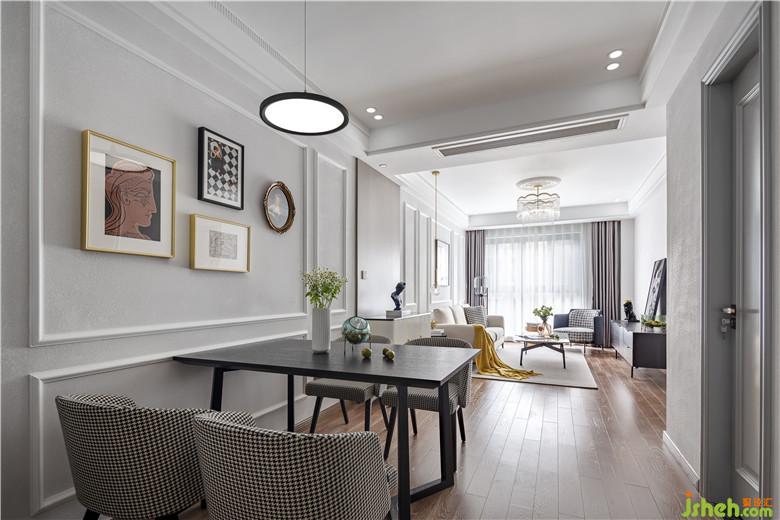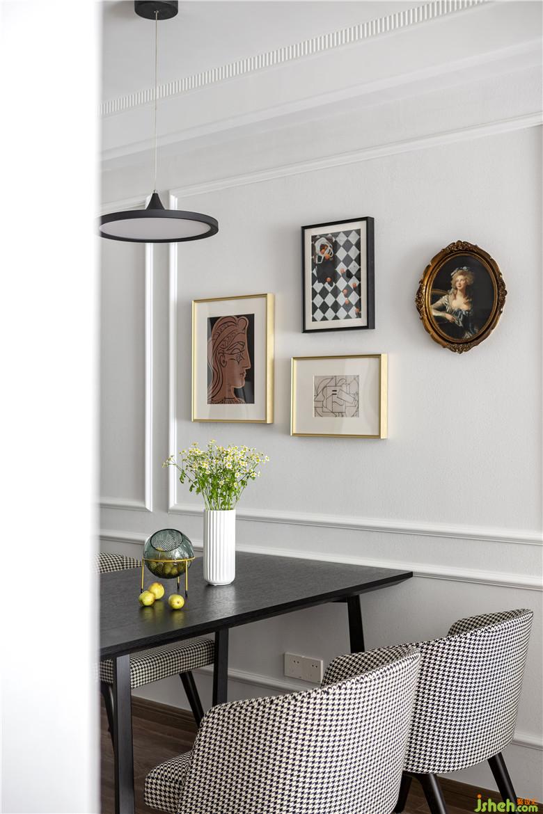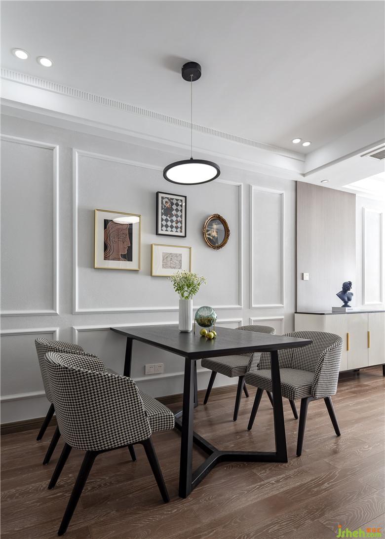 多種材質(zhì)的運(yùn)用讓空間層次感更加豐富,科定板,晶瓷畫,千鳥格紋樣等無(wú)不透露出整個(gè)空間的精致感和時(shí)尚感。裝修設(shè)計(jì)