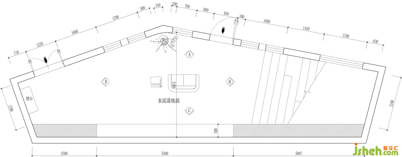 原建筑是一個位于員工食堂旁極其狹小且異形的空間。原本只是建筑修建中,遺留下來的一塊灰色地帶。整個建筑空間占地投影面積約30平方米,層高接近六米,立體空間也呈現(xiàn)出毫無邏輯的變異漏斗形狀。通風(fēng)采光也因?yàn)槠浣ㄖ旧淼脑?,受到了極大的影響。這無疑為設(shè)計(jì)的思考帶來了不小的阻力。
