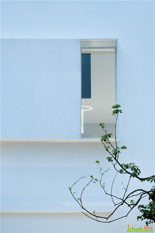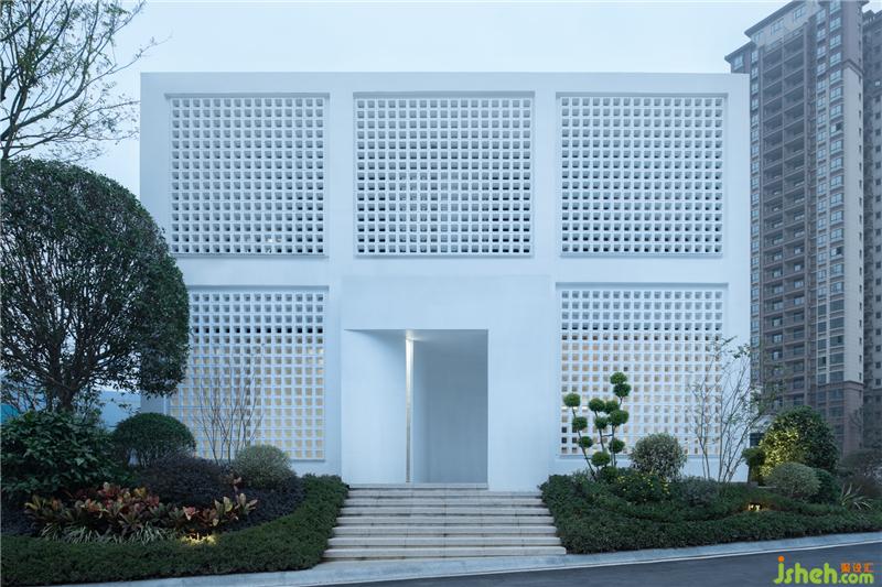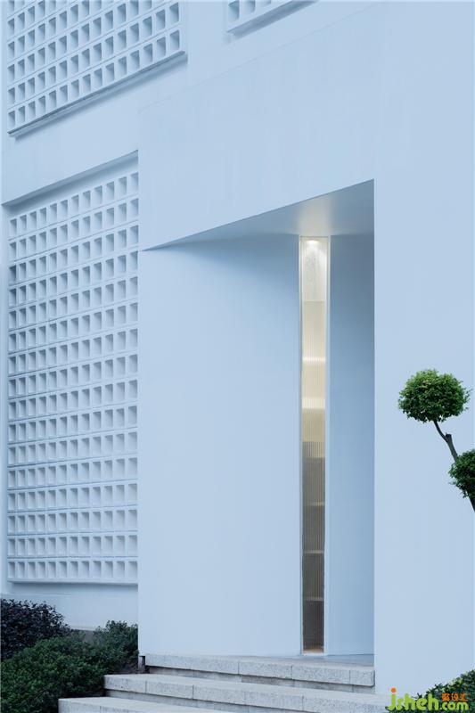 外觀上相對封閉的白色立方體是它的形式,墻面的孔洞幽微地向內(nèi)或向外滲透著,試探著。