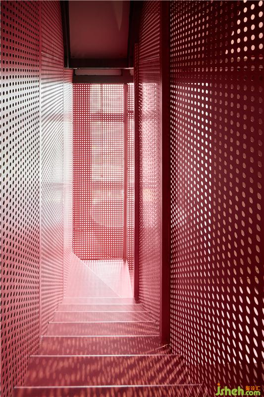 既然分為上下兩層,那么樓梯關(guān)系必然存在,再加之空間本身狹長的關(guān)系,在分為上下層之后,整個空間里并沒有過多的區(qū)域來設(shè)置較為核心的視覺中心,于是,我們在每一個房間里,都把樓梯作為了一個核心表達(dá)的載體。工廠里形形色色的樓梯形式,在經(jīng)過再次加工后,出現(xiàn)在每個房間之中,它不僅強(qiáng)化了視覺的中心,也通過材質(zhì)與形式的多重表達(dá),傳遞出摩登工廠的信息。再加之飽滿的日照關(guān)系,為空間增添了不少的趣味體驗。