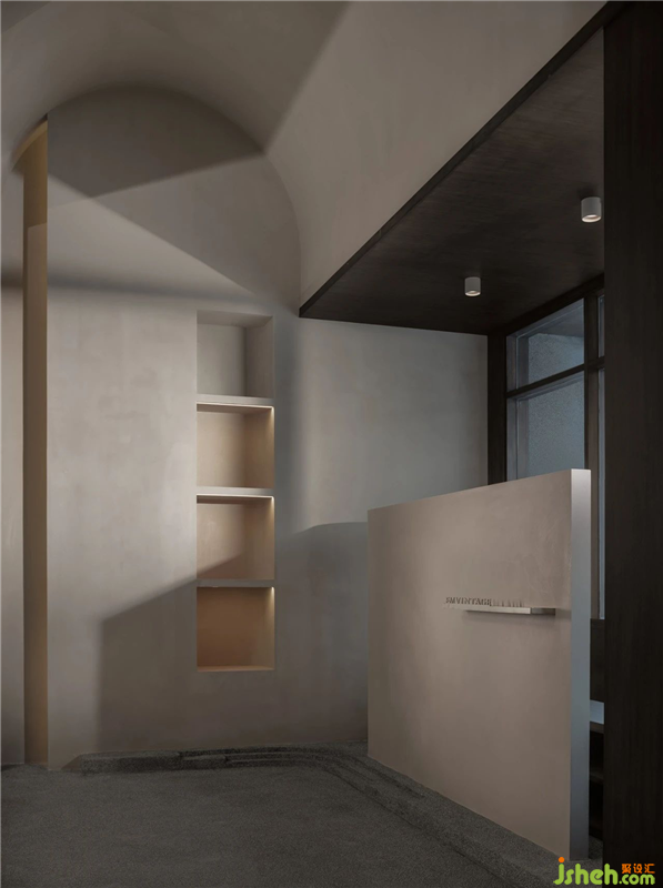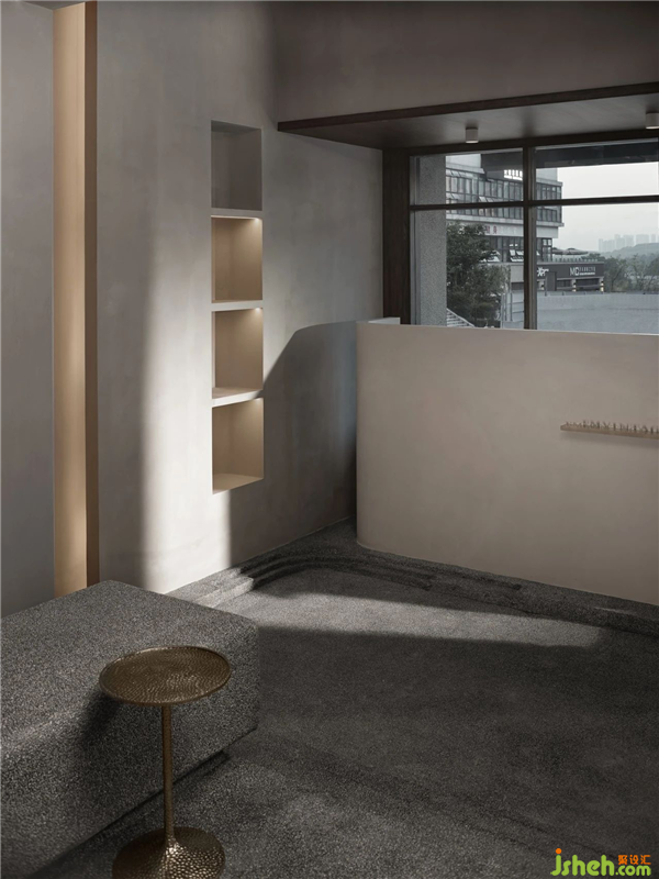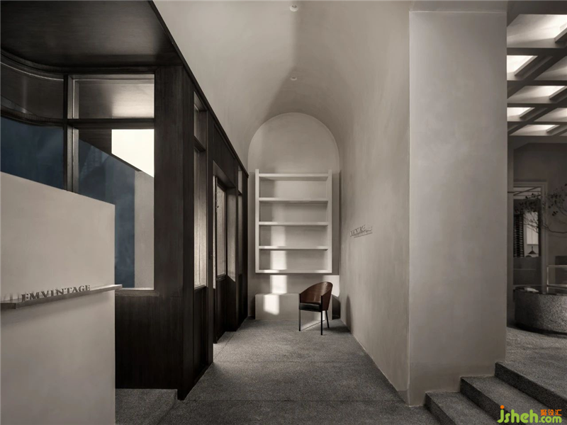 那么,展廳設(shè)計在保證空間趣味性的同時,品質(zhì)感需要得到一定的保證。要吸引他們走進(jìn)來,坐下去,形成空間文化的感召力。退后的門頭便是這樣的思考邏輯,友善的空間關(guān)系,讓過往的行人有了走進(jìn)來的欲望。而后的長廊,并未放置過多的產(chǎn)品。這是為了神秘感的營造。而這樣的營造,只為讓你充滿好奇的再進(jìn)一步。抬高的地臺,讓空間的層次與趣味得以保證,且在地臺的位置設(shè)置了主要的產(chǎn)品陳列區(qū)。高高在上的奢侈品包包正是迎合了消費(fèi)者們的心理。經(jīng)過抬高的陳列區(qū)之后,下沉的空間被分成了三個組成部分。最里面的空間為辦公及倉儲的功能??坑业膮^(qū)域則是吧臺及維修檢驗區(qū),滿滿的儀式感,則暗示著這些來自歐洲的名品昔日的輝煌。而吧臺對面則是寬敞舒適的休閑品鑒區(qū)。