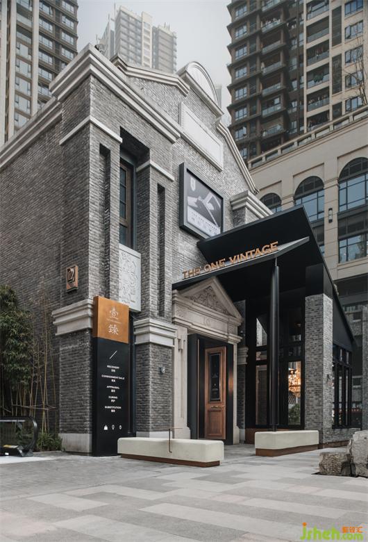 作為初創(chuàng)品牌的「壹臻」,其首家門(mén)店位于重慶市南岸區(qū)彈子石老街,是一棟仿民國(guó)式的獨(dú)立建筑。其物業(yè)本身,具有較強(qiáng)的年代感,這無(wú)疑是為該中古門(mén)店的視覺(jué)呈現(xiàn),奢侈品商店設(shè)計(jì)創(chuàng)造了一定的基礎(chǔ)條件。但也正是因?yàn)槠渫怀龅拿駠?guó)建筑形象,又為我們力求創(chuàng)新的空間設(shè)計(jì),造成了不小的物理環(huán)境障礙。再加上山城特有的地理因素,該物業(yè)背靠山體,面朝高墻,且商業(yè)環(huán)境的主交通流線(xiàn)并未與該物業(yè)產(chǎn)生直接的關(guān)聯(lián),甚至在主通道上,我們只能側(cè)視其建筑的一角……這都成為了在設(shè)計(jì)之初我們所面臨的挑戰(zhàn)。于是,如何讓過(guò)往的游客能關(guān)注到「壹臻」,并吸引他們進(jìn)入商店,將是我們首先要解決的問(wèn)題。