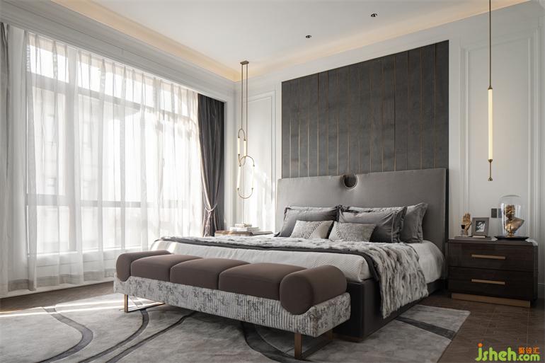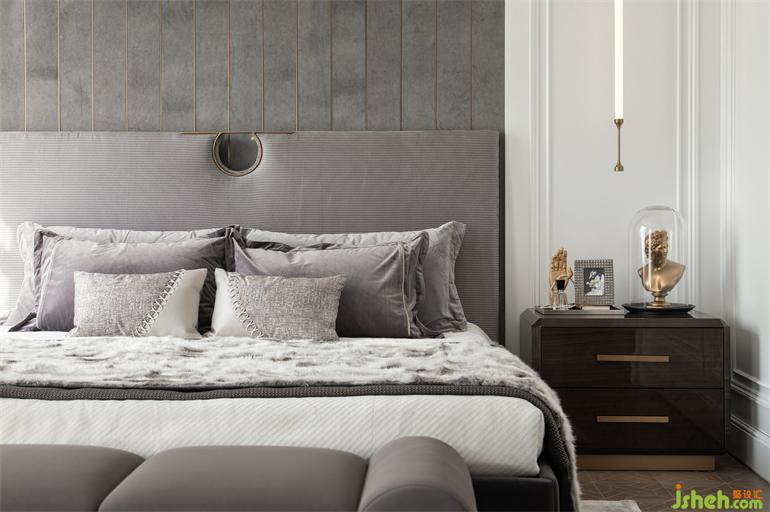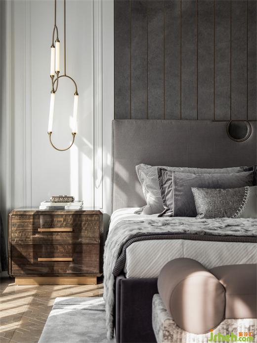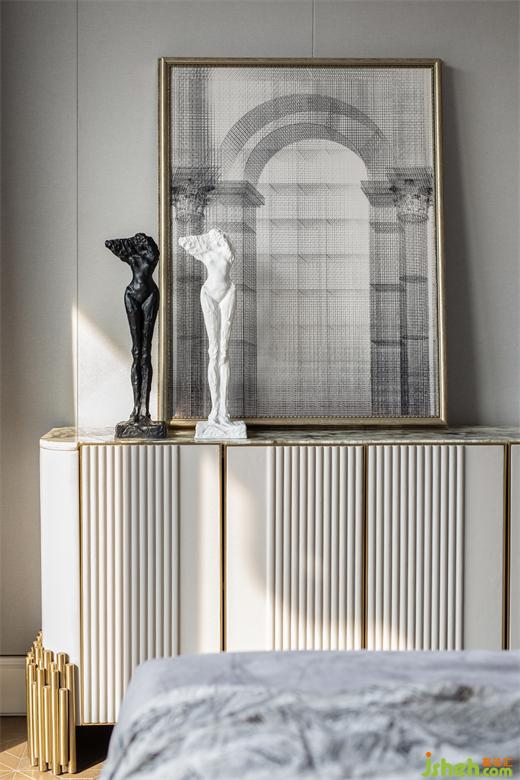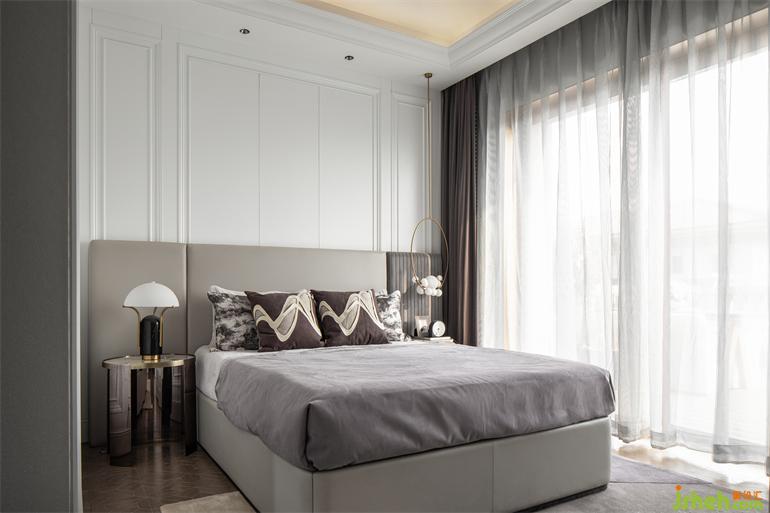 主人房體現(xiàn)出別墅裝修設(shè)計師對形式、流動、比例、材料、顏色和 紋理的平衡控制,注重對稱的設(shè)計美感,弧形圍合的過廳,兼顧功能性和酒店的儀式感,具有獨特的空間體驗。法式與復(fù)古的情調(diào)令空間縈繞著藝術(shù)和往昔歲月的氣息,空間形成一種外擴之張力,盛世如浪奔涌。