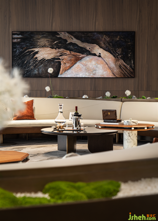 透過(guò)一管窺豹式的透視,能夠看出藝術(shù)品搖曳著風(fēng)姿,與周邊的香格里拉簾帷幕,西安會(huì)所設(shè)計(jì)構(gòu)成侘寂的空間錯(cuò)覺(jué)。但只終究是一場(chǎng)美麗但誤會(huì)的開(kāi)場(chǎng)白。