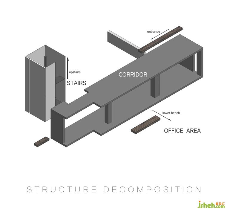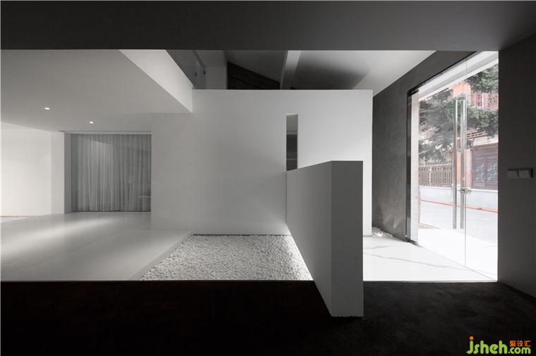 ▼塊體橫放色塊縱切大白體塊橫躺成入門屏風(fēng)