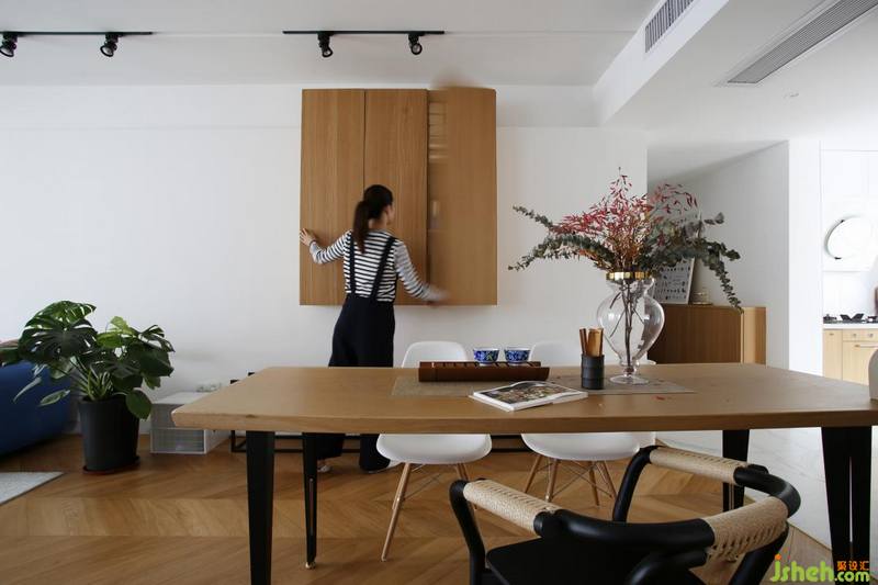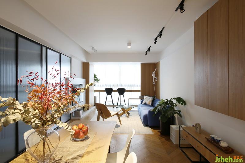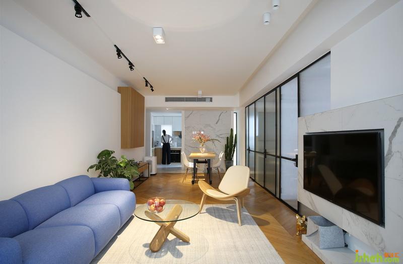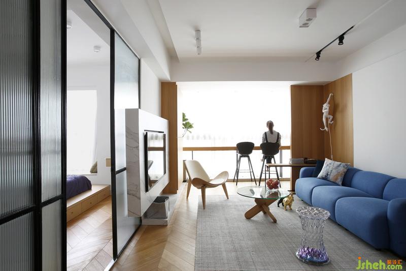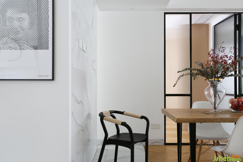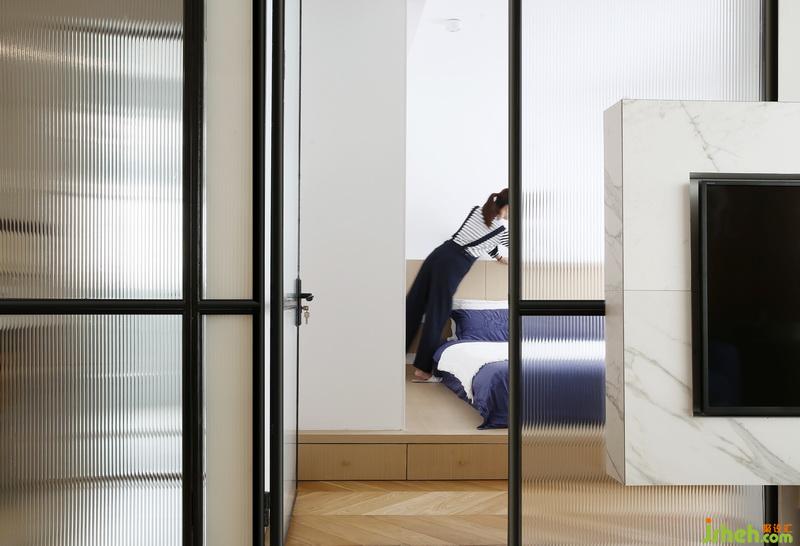 在空間布局上,我們室內(nèi)設(shè)計(jì)師根據(jù)業(yè)主的生活需求做了充分的整理工作,首先我們?cè)谄鹁邮液团P室之間大膽地采用玻璃代替原有的實(shí)墻,讓空間變得輕盈和明亮。并把原來的過道納入衛(wèi)生間的使用范圍,提高空間的利用率和舒適度。同時(shí)室內(nèi)設(shè)計(jì)師也把陽臺(tái)劃分到客廳,用框景的手法將戶外景色引入室內(nèi),延長空間的縱深感。通過對(duì)材料與空間的重組,希望營造出多變的空間節(jié)奏。