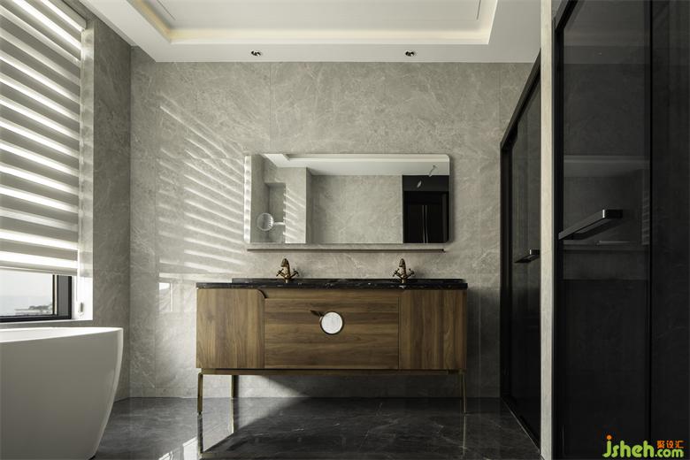 原木與大理石在浴室空間里相輔相成