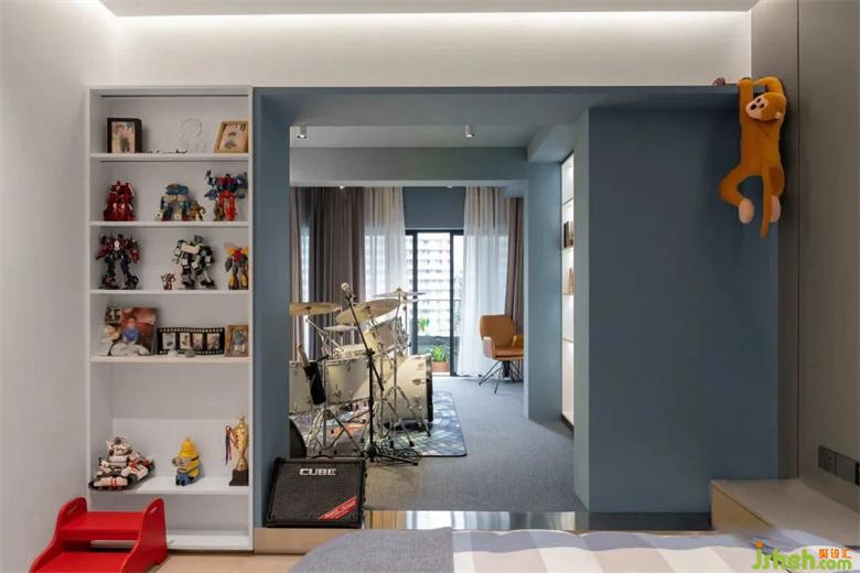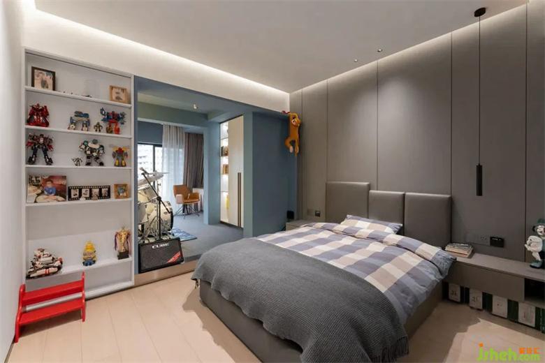 周全的設(shè)計建立在對業(yè)主生活的體察上,占據(jù)陽臺的一部分融入臥室,麗雅龍城住宅設(shè)計用藍(lán)色盒子點(diǎn)亮少年的夢想,與休息區(qū)域動靜結(jié)合,色彩的搭配碰撞出蓬勃的活力。