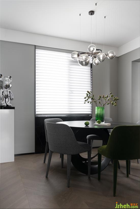 餐廳用極簡的語言表達格調(diào)與內(nèi)涵,鑫嘉園家居設計以一盞精致的吊燈點亮整個空間,搭配同色系的餐桌椅,形成統(tǒng)一的美學氛圍。