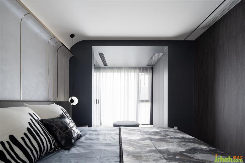 橫平豎直的線條語素在主臥空間被打破,弧形吊頂與弧形床頭墻構(gòu)成了主臥空間的藝術(shù)分割比例,鑫嘉園家居設(shè)計(jì)以柔美的精致感打破灰色主調(diào)的沉悶,營造靜謐放松的意境。