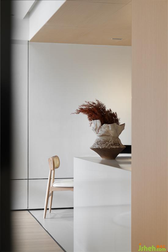 通刷的白色墻面與原木色結(jié)合