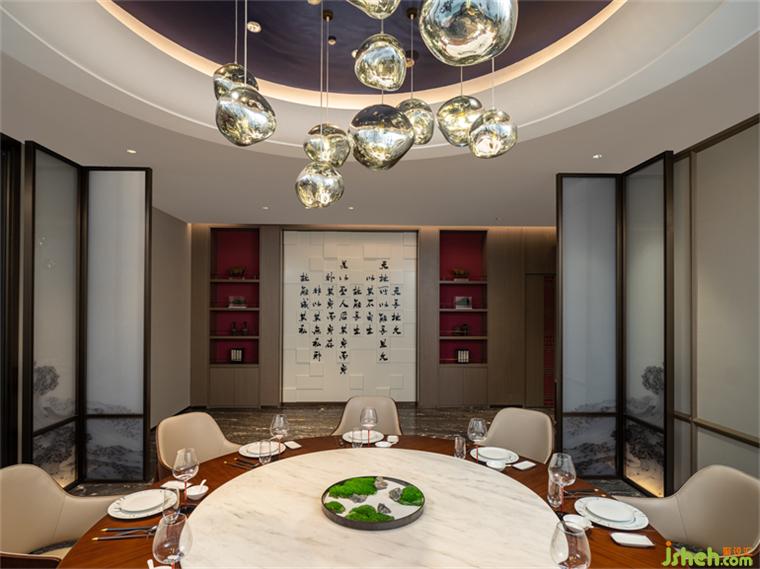 The way to be broad-minded may hidden in the world of mortals,which is the Taoist advocate ofgoing into the society. Inspired by this idea, the designer puts into clever thought on space design. The lighting in the banquet area is designed as hexagonal pavilions, so that the guests can feel the elegant taste of the literati and enjoy the pleasure and passion of drinking and singing.