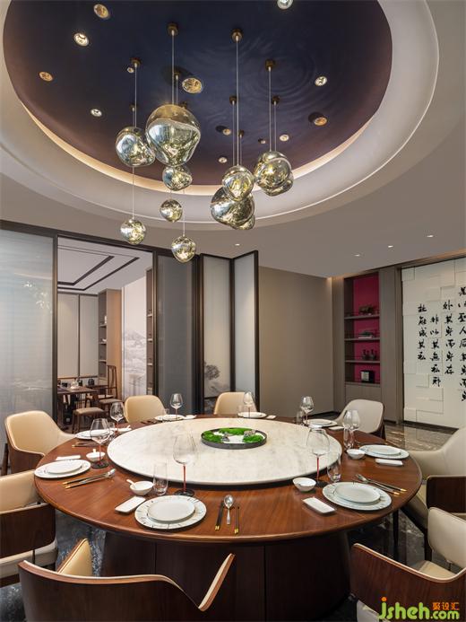 “兩岸潮涌,滄海一笑”,隱于紅塵之間,笑看人生百態(tài),這正是道家所倡導(dǎo)的入世姿態(tài)。深南道會(huì)所設(shè)計(jì)師正是抓住了這一理念,在空間設(shè)計(jì)上付諸巧思,將宴會(huì)區(qū)的燈飾設(shè)計(jì)為六角亭臺(tái)的造型,使客人感受到蘭亭集會(huì)的文人雅趣,暢享置酒會(huì)友、對(duì)飲和歌的快意豪情。