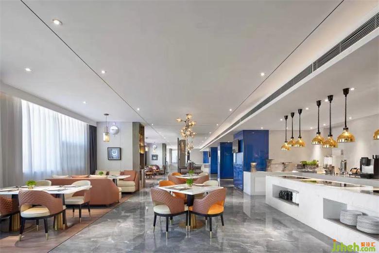 全日餐廳延續(xù)了“珍珠泉”的文化意向,湛藍色的配色基調(diào)與烤漆材質(zhì)相結(jié)合,工藝精良的現(xiàn)代材質(zhì)完美還原了水光瀲滟的流動觀感,為空間增添動態(tài)之美。貴州觀山湖酒店設(shè)計充分考量了空間的功能性,餐廳的用光更為克制和中性,使空間內(nèi)的物件材質(zhì)更返璞歸真,展示自然的紋理與光澤。