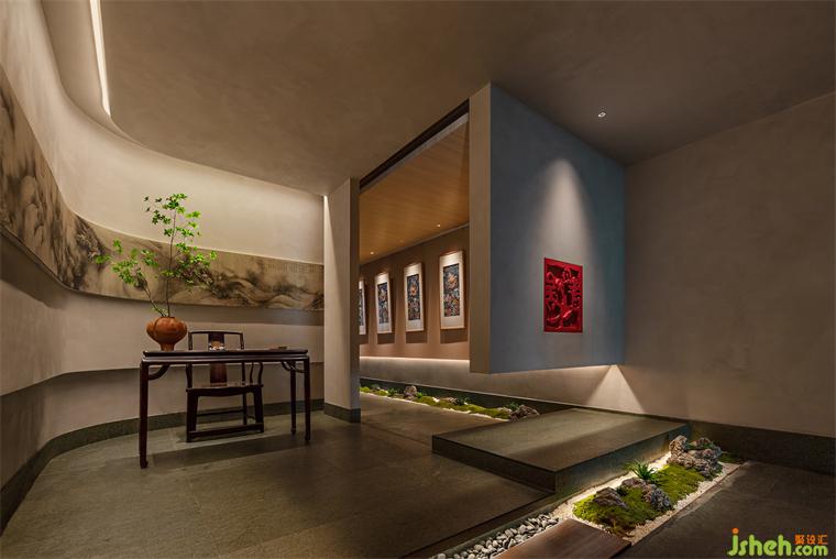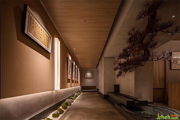 穿行于松枝竹影間,沿途的砂石敷沙與青石蒼苔錯落分布,深圳晴舒料理設(shè)計構(gòu)成一幅枯山水庭院的空闊景致。木質(zhì)墻面如泛黃的唐紙,光線穿過松枝漫射四內(nèi),在南宋畫家陳容的長卷《九龍圖》上留下濃淡有致的陰翳。更勝于浮世繪的刻板,《九龍圖》的“云蒸雨飛、天垂海立”恢弘氣勢延伸了空間的內(nèi)涵與向度,引發(fā)歷史與精神的共鳴。