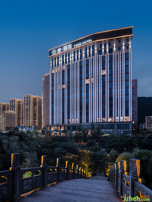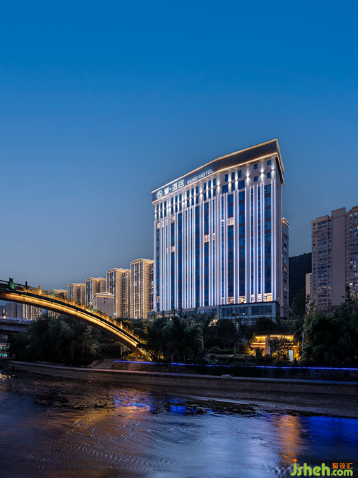 “山為魂魄,蔥翠崢嶸,水為脈象,湯湯靈性”。甕安縣地處貴州黔南地區(qū),烏江橫貫,森林蓊郁,實(shí)現(xiàn)城市與自然的無(wú)縫銜接。本案于都市和園林間落址,沐曉鳳暮靄,看林蔭夕照,觀風(fēng)物長(zhǎng)宜,酒店設(shè)計(jì)以生態(tài)與人文涵蘊(yùn)一域藝術(shù)雅集。