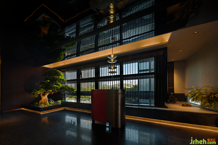 蒼松虬踞,竹柏綿延,順長廊步道而行,可見格柵疏影,深堂幽韻。