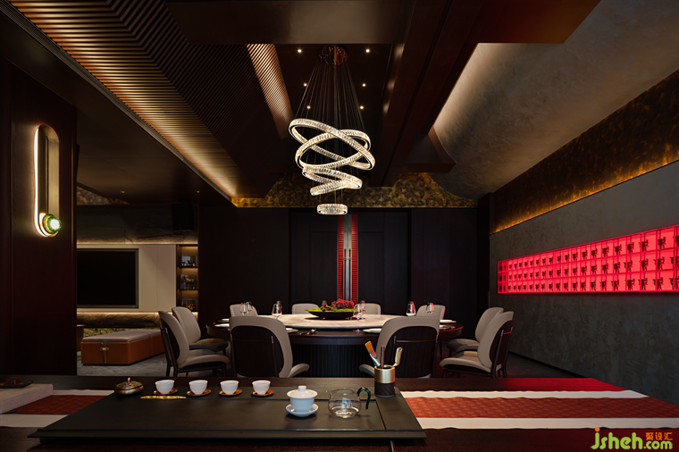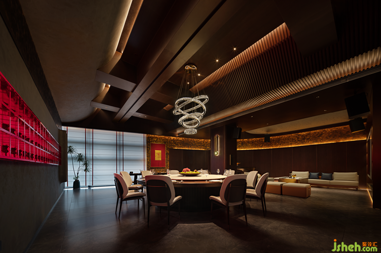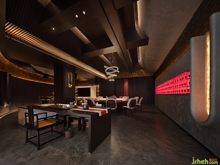 The overall space takes inspiration from the traditional palace banquets, employing gold and red colors to create a vivid portrayal of the convivial atmosphere among the guests. It captures the essence of the poetic sentiment of wanting to immerse oneself in the intoxication of verses, as if pouring one's poetic emotions into the very essence of the golden bottles.