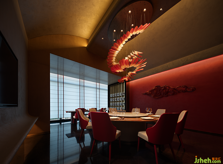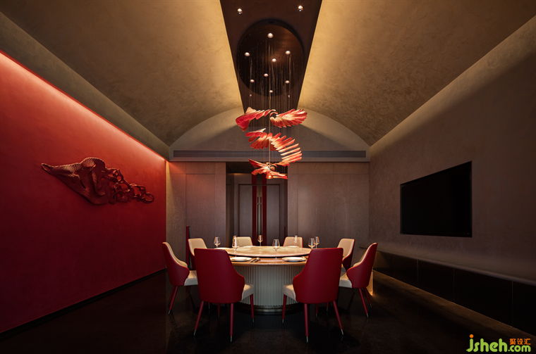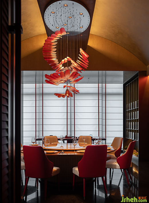 The designer applies the element of "Neishang Yuyi" in the art design, the colorful feathers are like dancing, which dyes a warm and elegant artistic atmosphere for the space.
