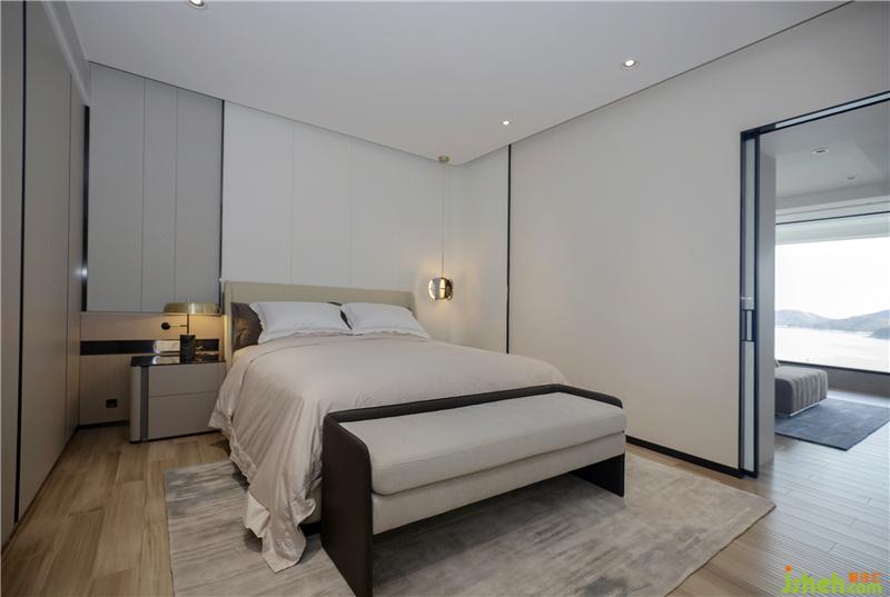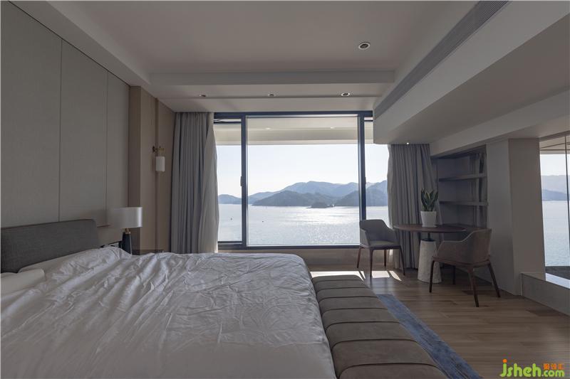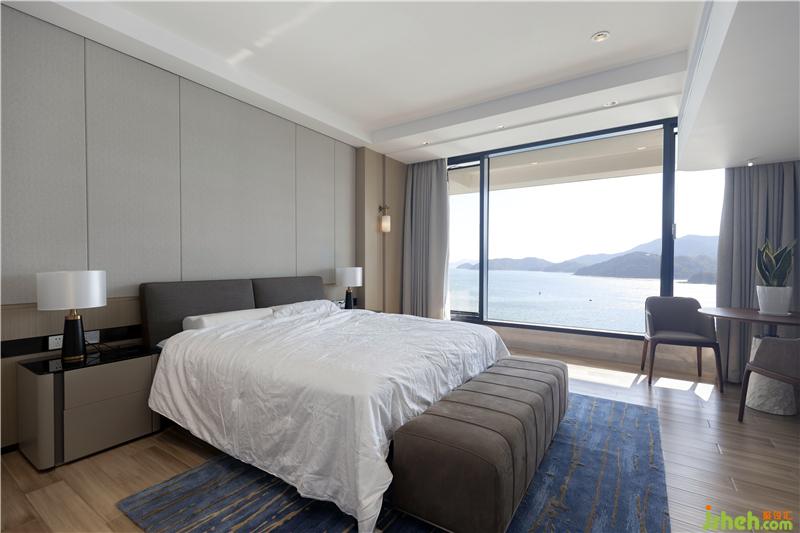 步入房間、即可透過全景落地窗欣賞到醉人的沙頭角海、遠眺錯落有致小山風(fēng)光、弱化室內(nèi)的裝飾、深圳裝修設(shè)計將其自然的風(fēng)光海天一色帶進家里、更加接近自然無限的拉近。
