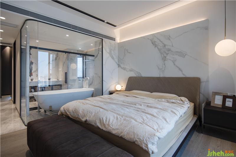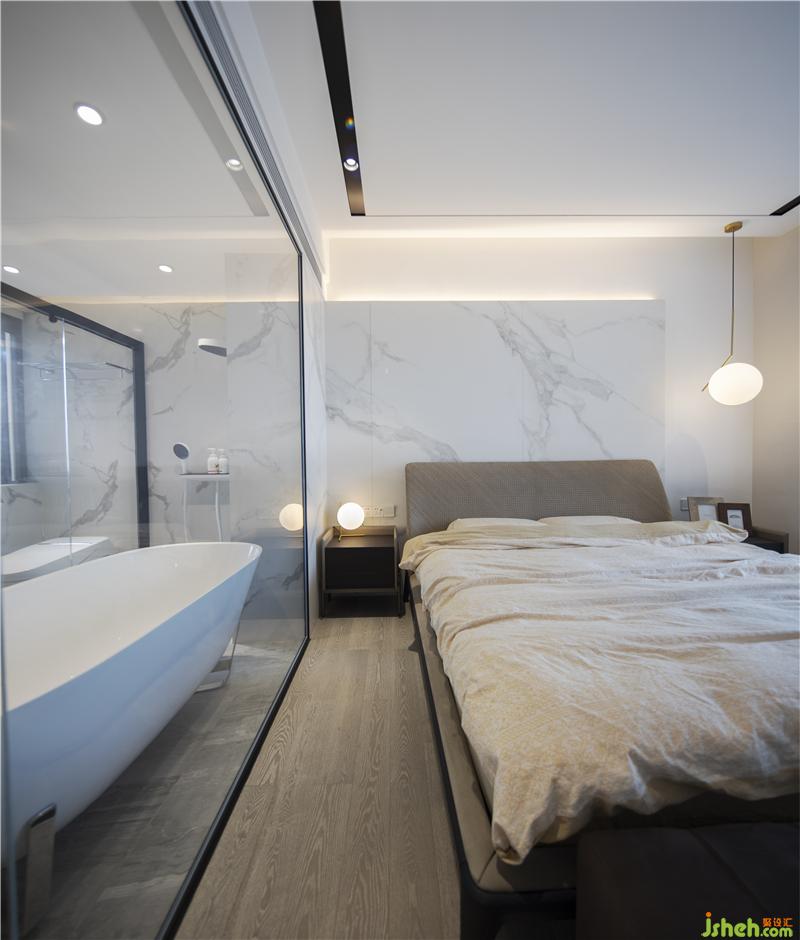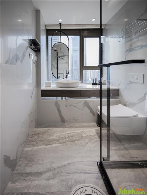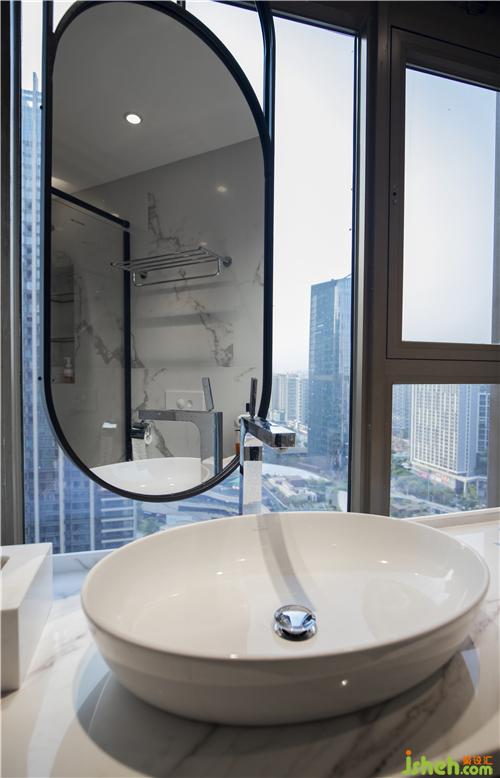 衛(wèi)生間是情景交融的空間,狹小的空間也需要儀式感、戶外的云朵飄動,眺望極佳視野俯瞰著深圳天際線,絕美景致統(tǒng)統(tǒng)被收入囊中,賞心悅目!