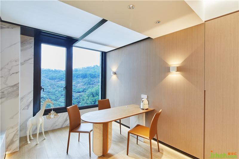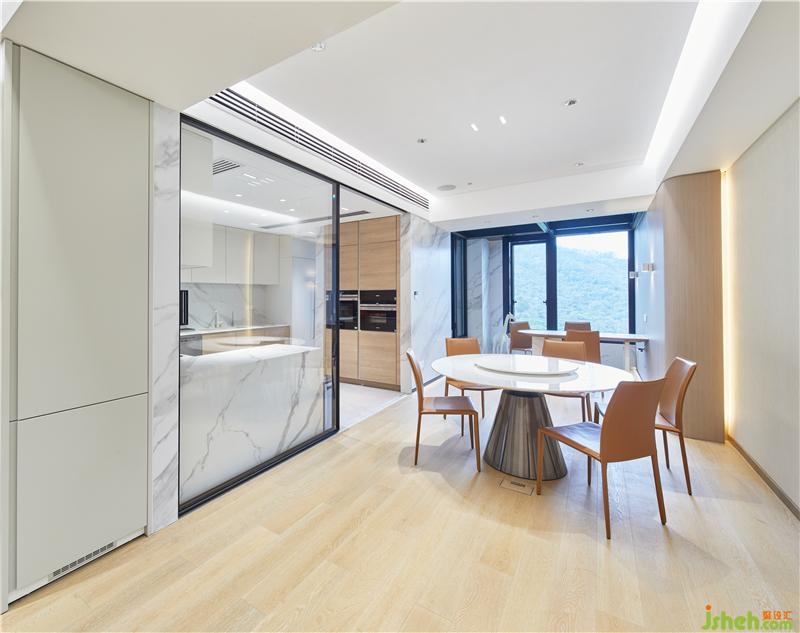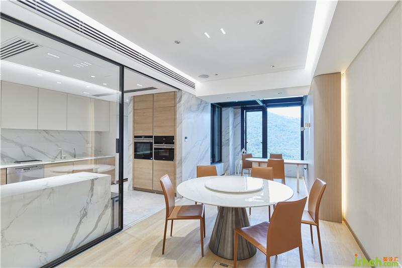 集匯設計將其廚房與餐廳貫穿通透、讓就餐空間更加現(xiàn)代和更開闊的視野用餐環(huán)境。深圳裝修設計山景相依,天然的材質、休閑的屬性體現(xiàn)現(xiàn)代格調的高雅