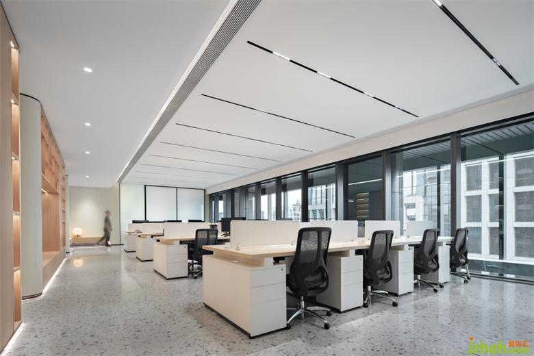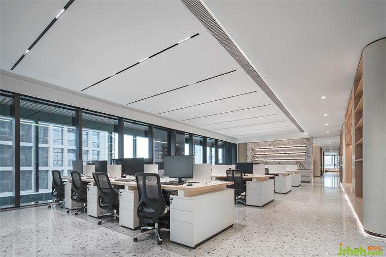 開放辦公區(qū)保持簡潔克制的基調(diào),珠寶展廳設(shè)計(jì)在優(yōu)良的采光、標(biāo)準(zhǔn)化的辦公配套、合宜的間距中,醞釀出松弛有度的凝聚力。工位的排列形態(tài),長短穿插,在有序變化下流露出靈動(dòng)與活力。