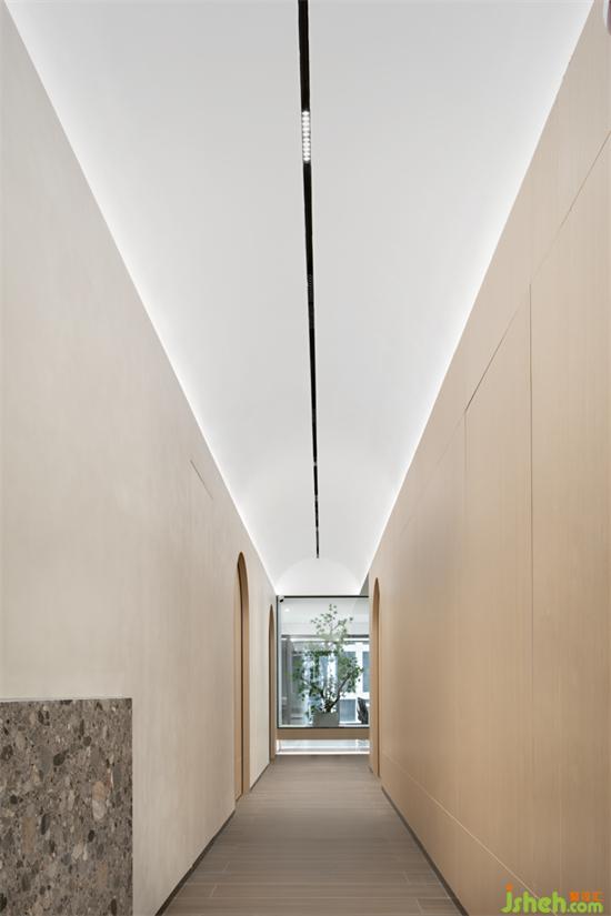 拱形長廊引人深入,仿若悠長的小巷,意境頓顯。簡單的一絲綠意,珠寶展廳設(shè)計(jì)營造出雅靜迤邐的自然之境,身浸其中,讓人在不同視角與情緒中脫變新生。