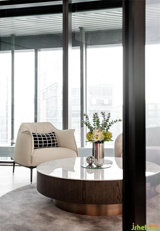 會(huì)客沙發(fā)設(shè)在臨窗位置,悄然照進(jìn)的自然光,珠寶展廳設(shè)計(jì)一并將窗外晴致,令人視野開闊,清況逸然。